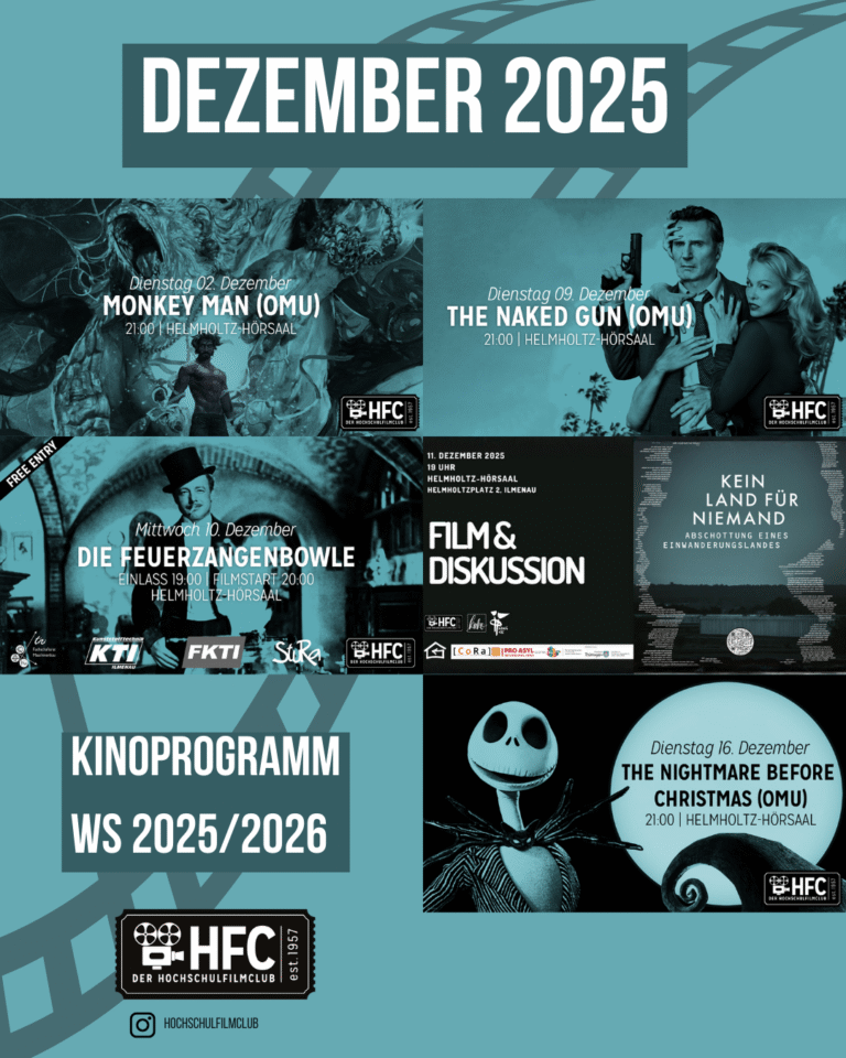 Start der Vorführungen ist im Regelfall 21:00 Uhr im Helmholtz-Hörsaal der TU Ilmenau.