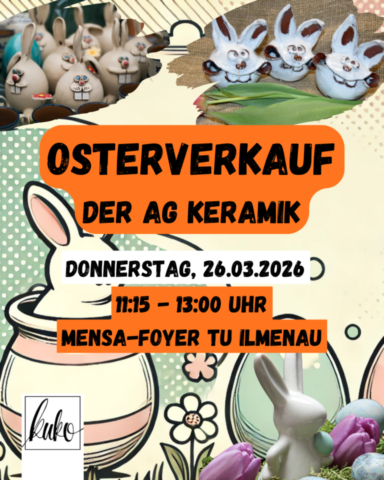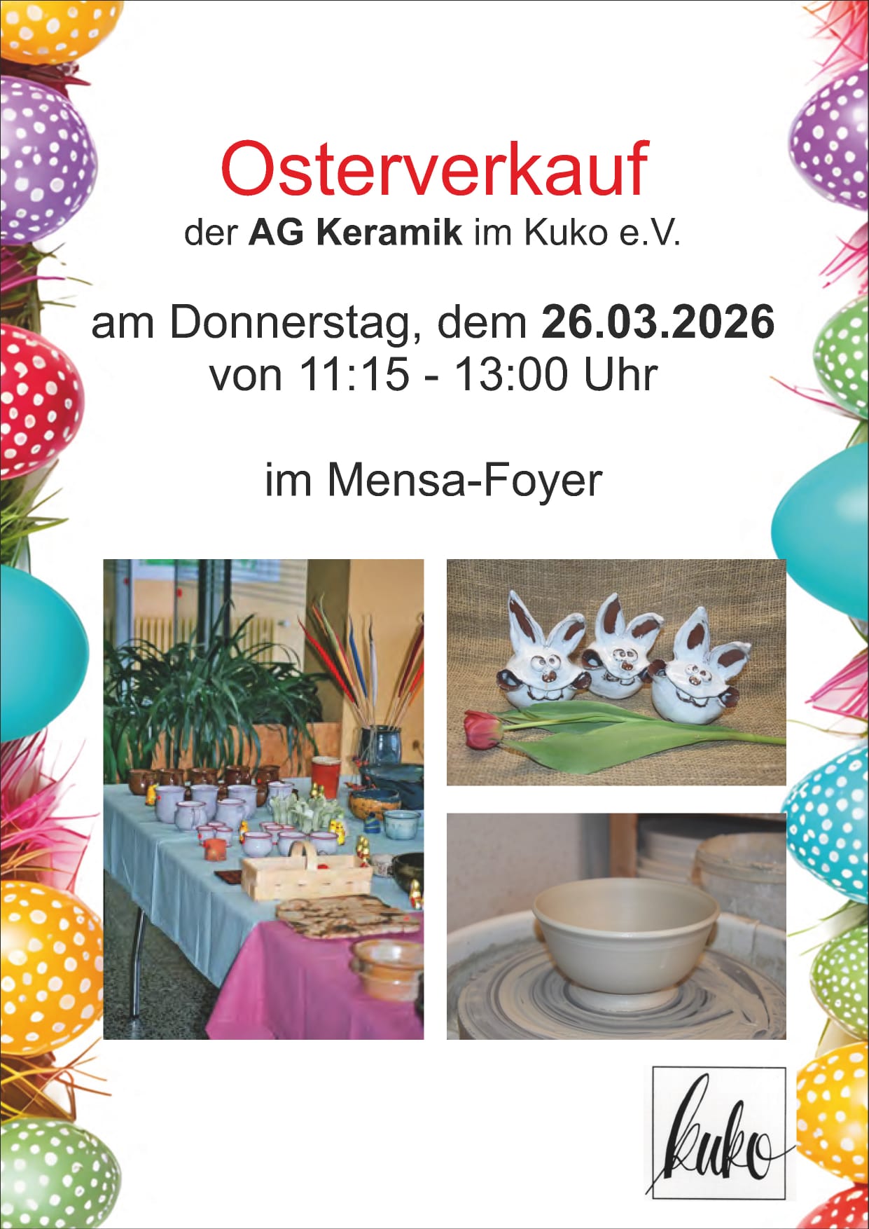 Dann komm vorbei zum Osterverkauf der AG Keramik im KuKo e.V.!